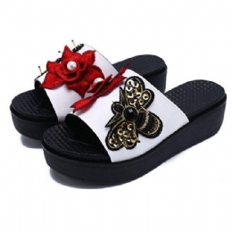 Damstickade Bekväma Tofflor Med Öppen Tå