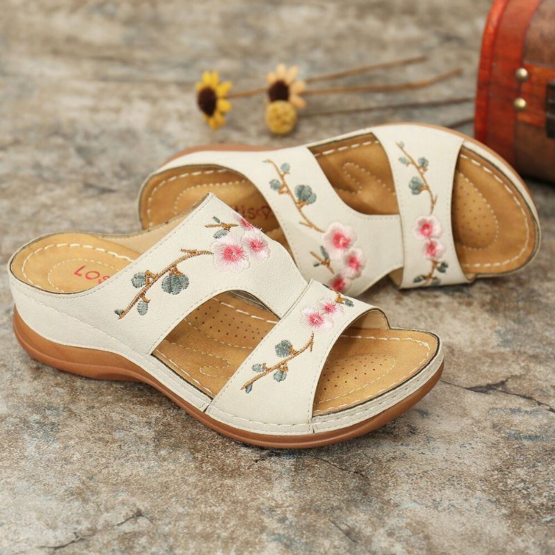 Blomsterbroderi För Kvinnor Med Öppen Tå Casual Summer Wedge Sandaler