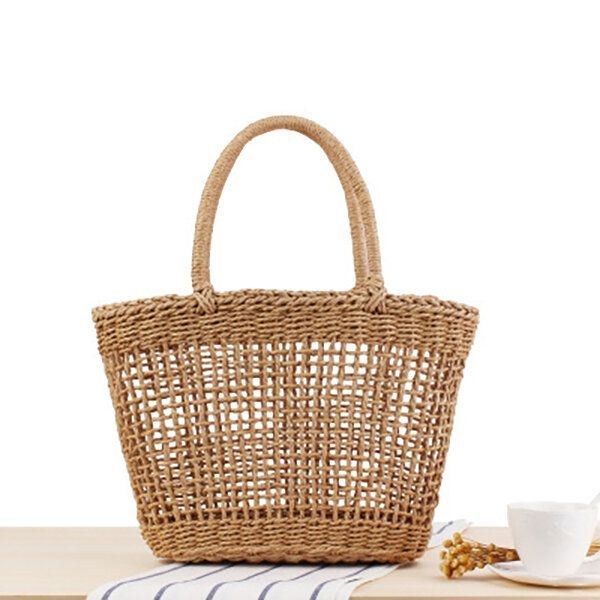 Dam Bärbar Ihålig Vävd Handväska Resekorg Tide Snygg Halmväska