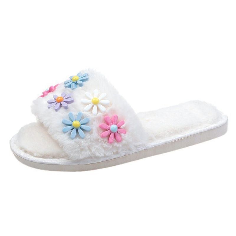 Dam Blomsterdekor Halkfria Tofflor I Plysch Bomull