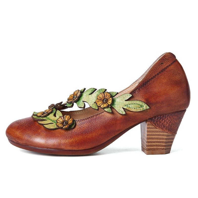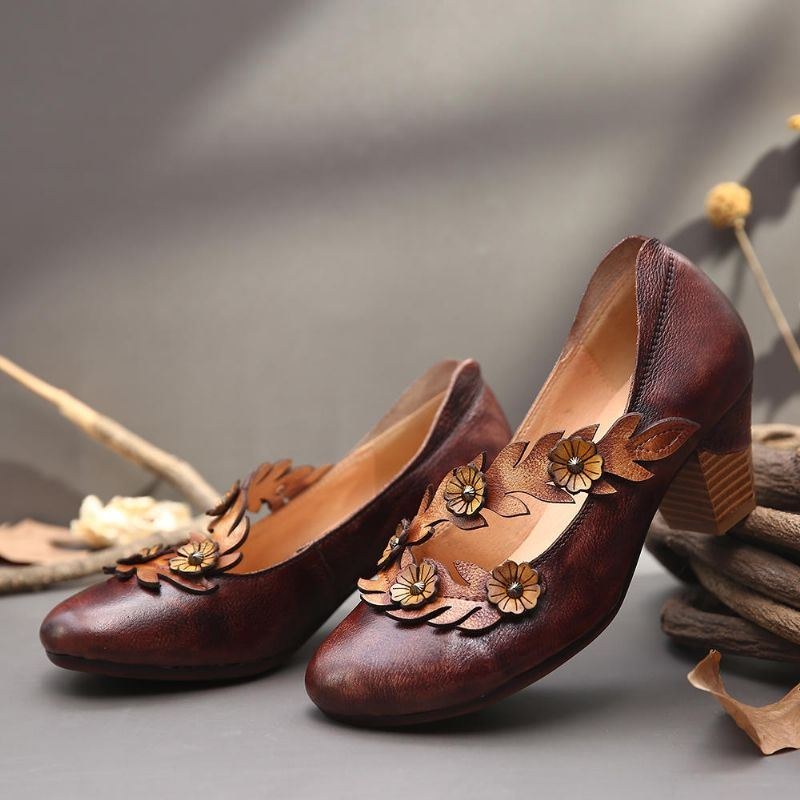 Dam Blomsterdekoration Äkta Läder Slip On Spring Pumps