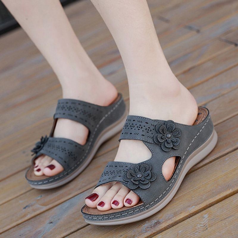 Dam Blomsterdekoration Öppen Tå Meddelande Mjuk Sula Bekväm Casual Wedge Sandaler