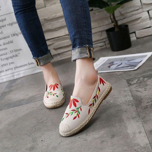 Dam Casual Broderade Flower Cloth Flat Loafers