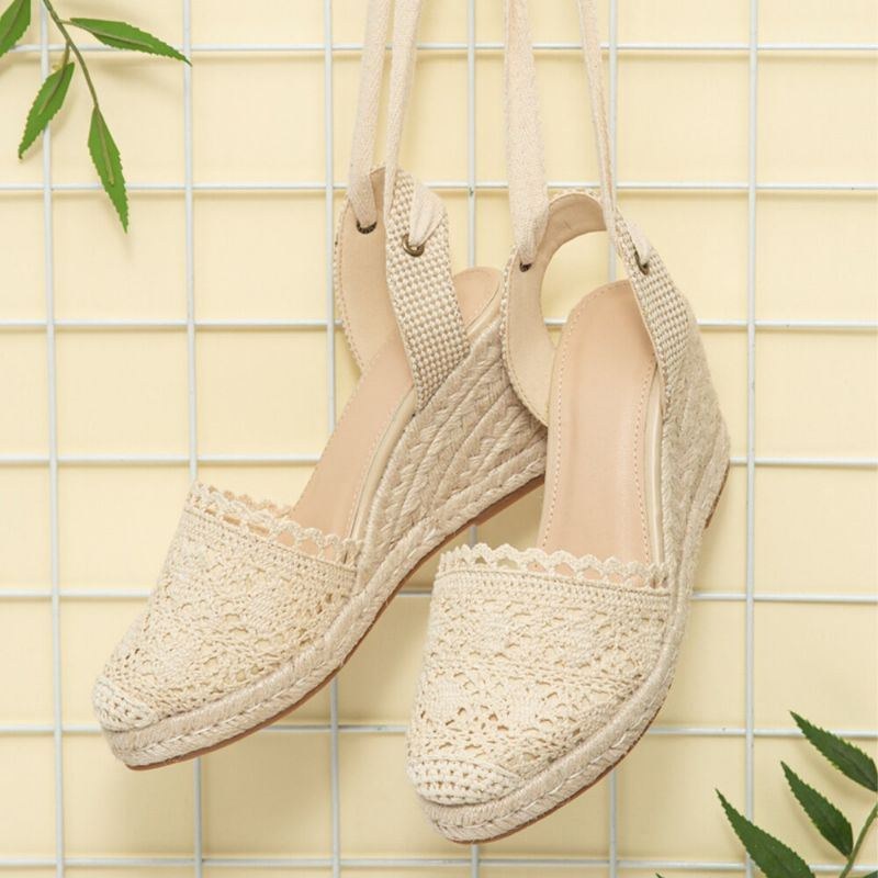 Dam Casual Spets Stängd Tå Korsrem Espadrillekilar