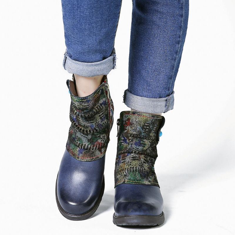 Dam Stiliga Stammönster Skarvning Varmfodrad Blockklack Dragkedja Ankelboots