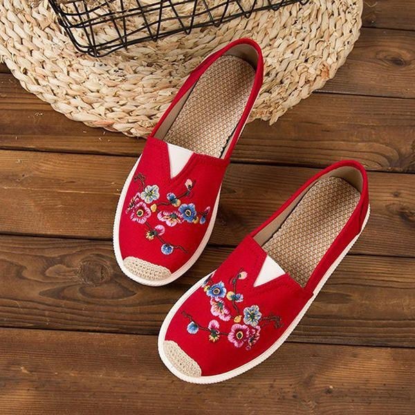 Dambroderi Avslappnad Mjuk Sula Flat Loafers