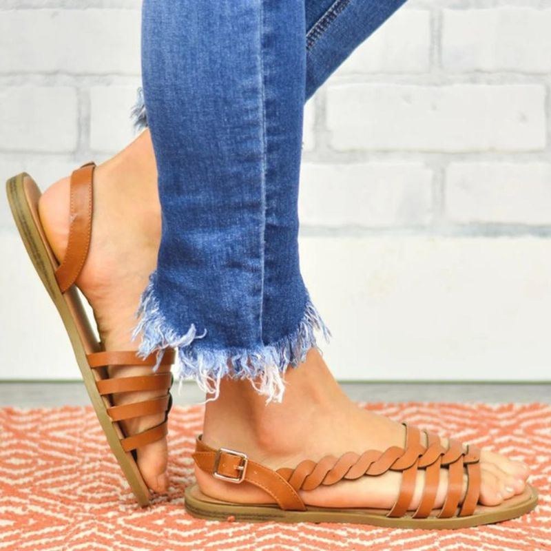 Damer Stor Storlek Flätad Öppen Tå Summer Beach Flat Sandaler