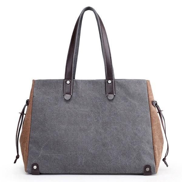 Damkvalitet Canvas Casual Stor Kapacitet Färgblock Tygväska Handväska