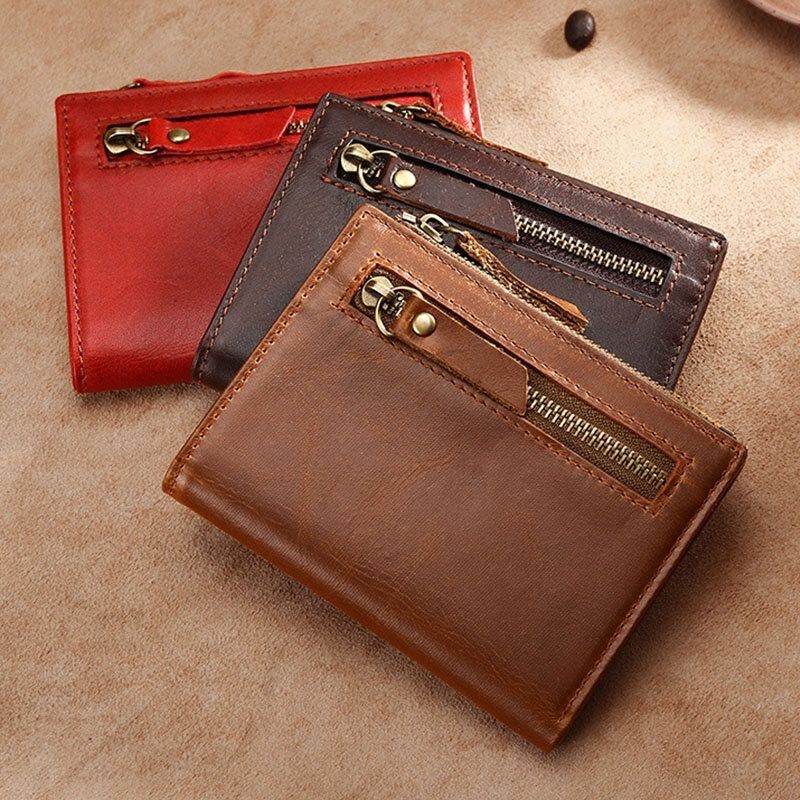 Första Lager Kohud För Män Bifold Anti-magnetisk 7-kortsfack Kortfodral Plånbok