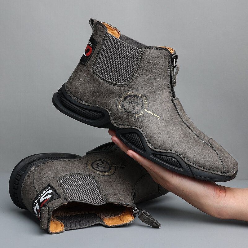Herr Äkta Läder Handsömmar Andas Mjuk Sula Varmfodrad Dragkedja Stövlar Fritidsskor