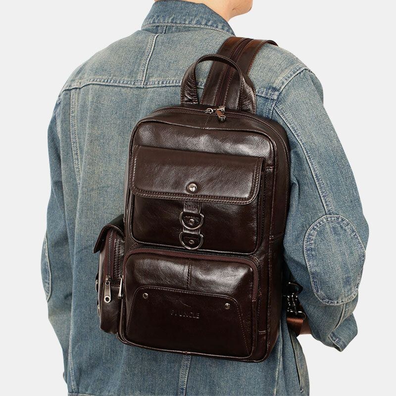 Herr Äkta Läder Multifunktion Multi-carry Outdoor Travel Cowhide Crossbody Bag Ryggsäck