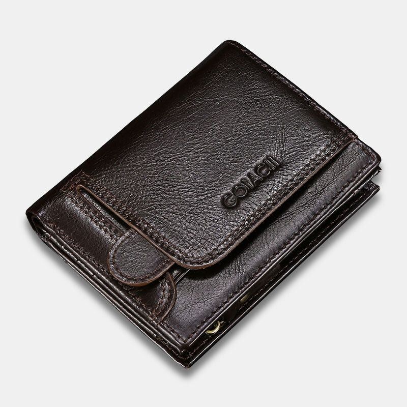 Herr Äkta Läder Multifunktion Stöldskydd Retro Kort Plånbok Flerkortsplats Korthållare Myntväska