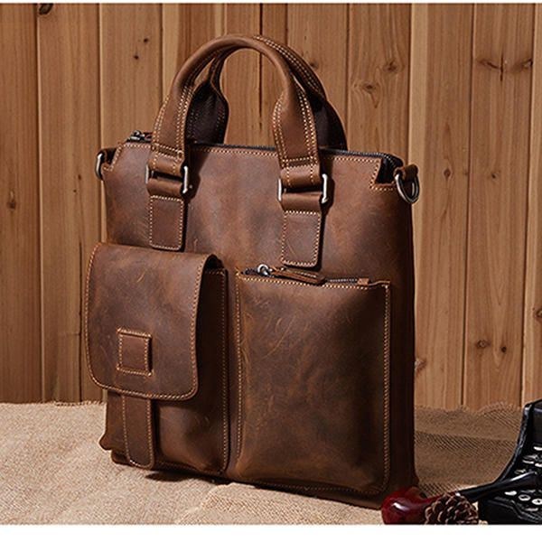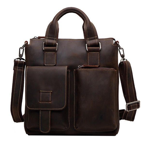 Herr Äkta Läder Retro Handväska Crossbody-väska Casual Business Axelväska Portfölj