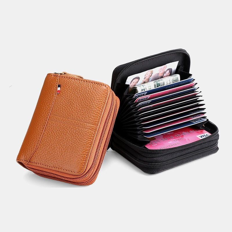Herr Äkta Läder Stor Kapacitet Litchi-mönster Orgelform Multi-fack Korthållare Plånbok