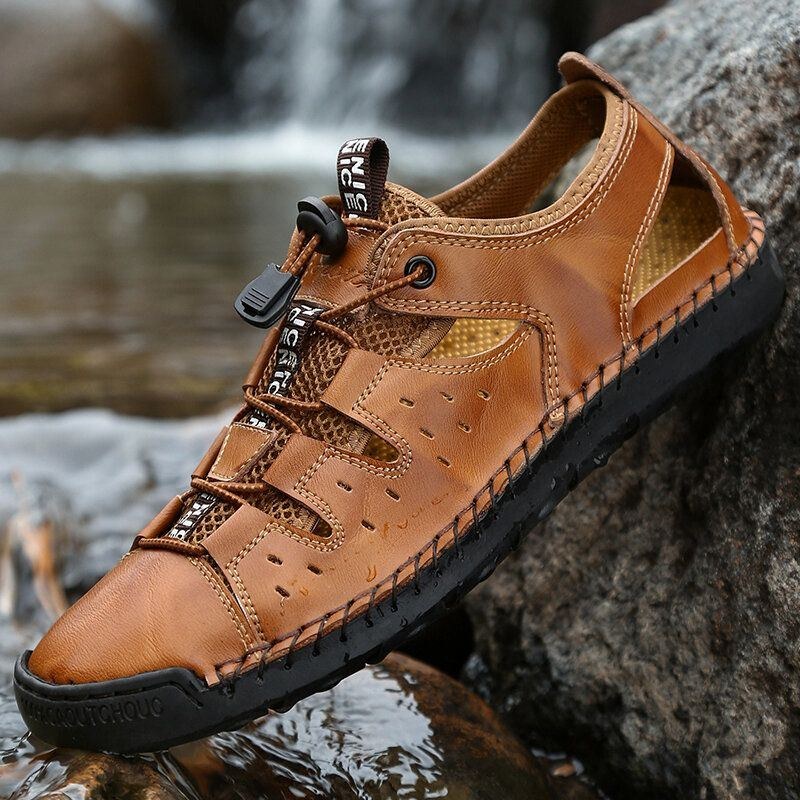 Herr Handsömmar Mikrofiberläder Halkfri Mjuk Sula Casual Sandaler
