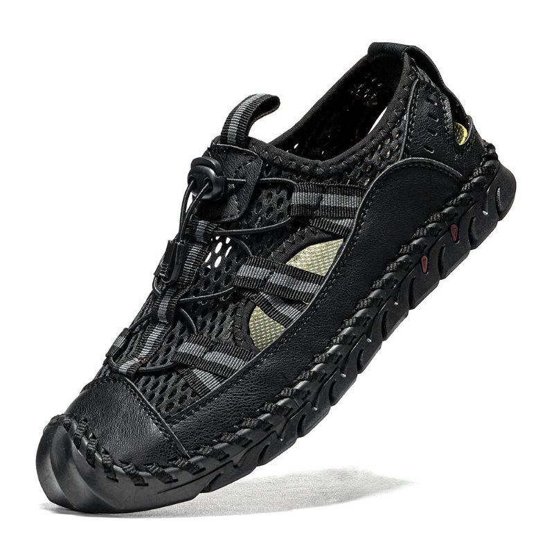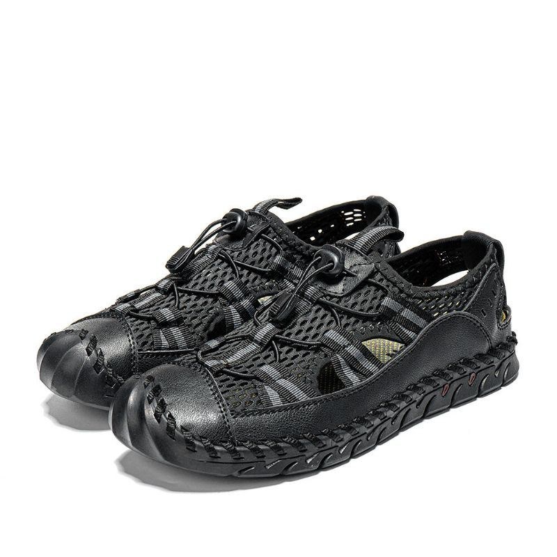 Herr Kohud Läder Handsömnad Mesh Andas Mjuk Botten Casual Outdoor Sandaler