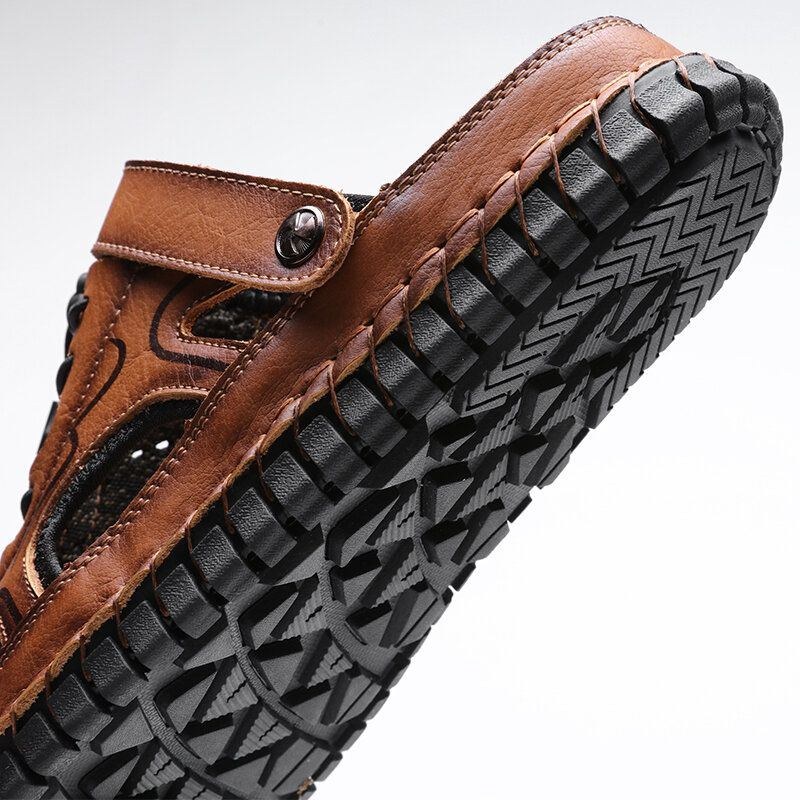 Herr Kohud Läder Tvåvägs Andningsbar Stängd Tå Halkfri Casual Outdoor Sandaler