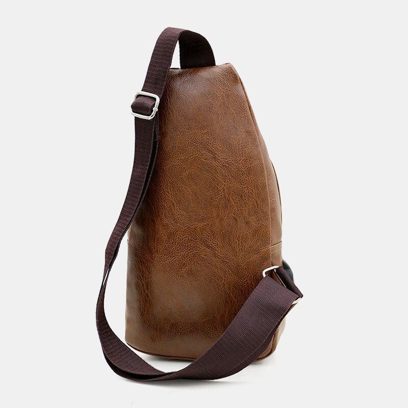 Herr Konstläder Usb-laddningshörlurar Resor Retro Business Bröstväska Crossbody-väska