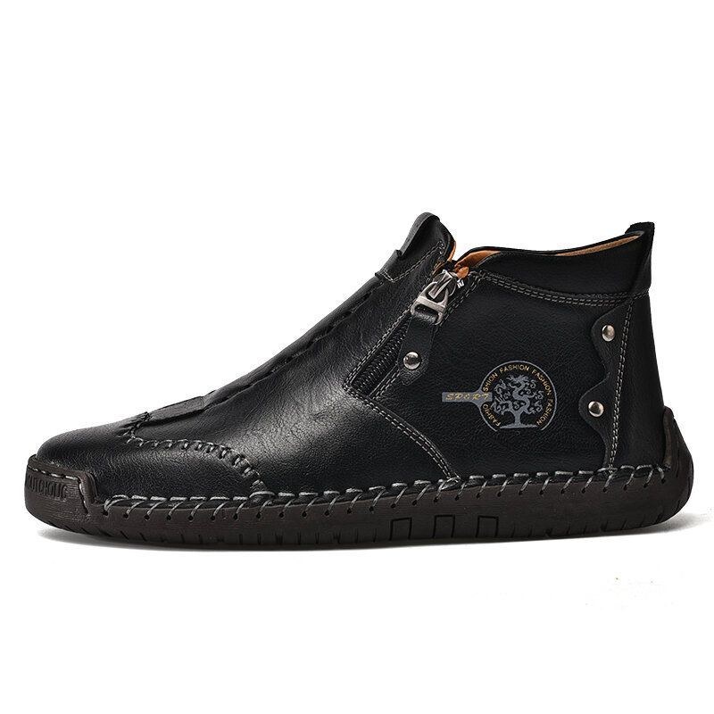 Herr Läder Andas Handsömmar Mjuk Sula Bekväm Kort Dragkedja Casual Ankelstövlar