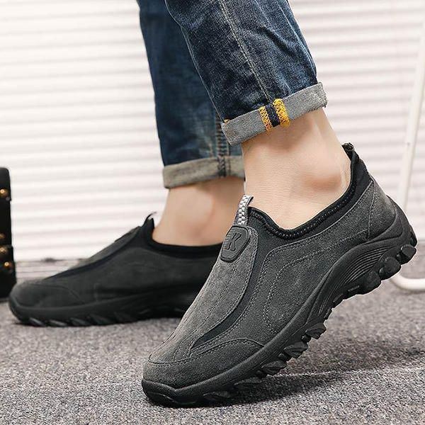 Herr Mocka Läder Elastiska Slip On Outdoor Hiking Sneakers