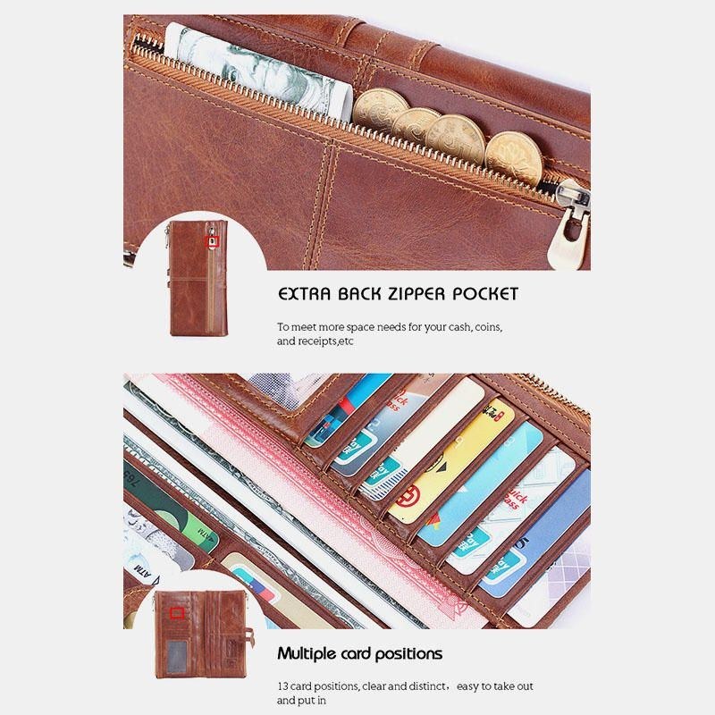 Herr Plånbok I Äkta Läder Clutchväska Med Dragkedja