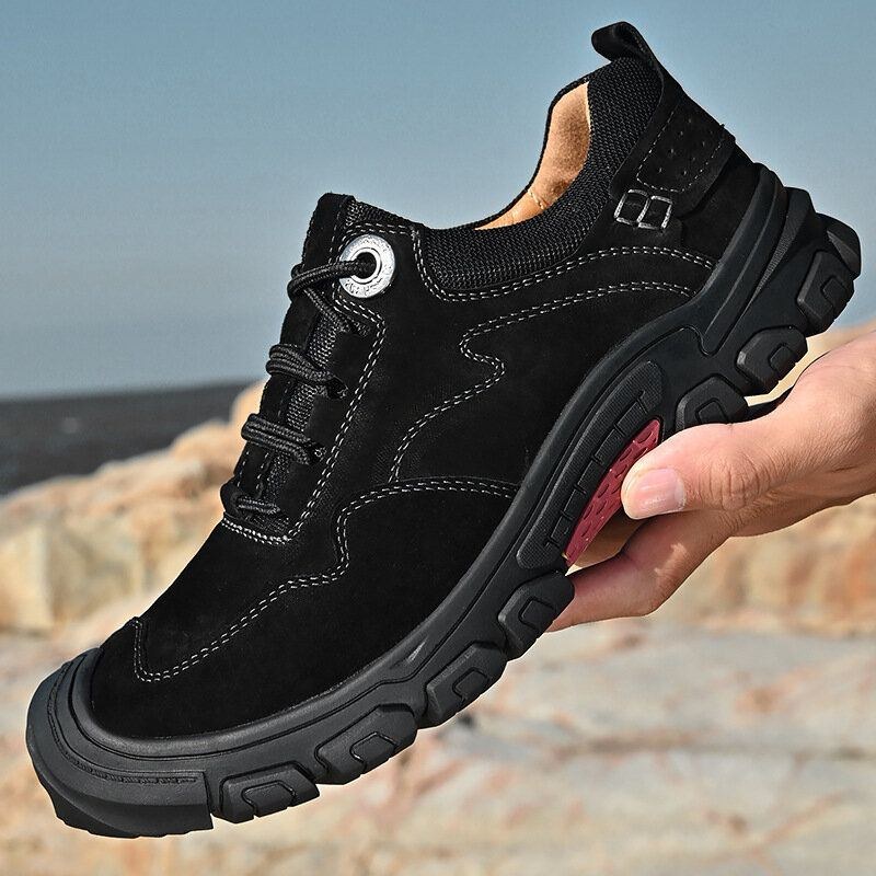 Herr Utomhus Grisskinn Läder Mjuk Sula Casual Walking Skor