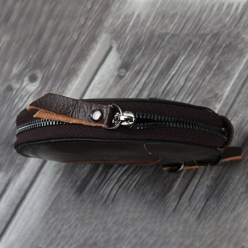 Herr Vintage Äkta Läder Enfärgad Dragkedja Rund Myntplånbok