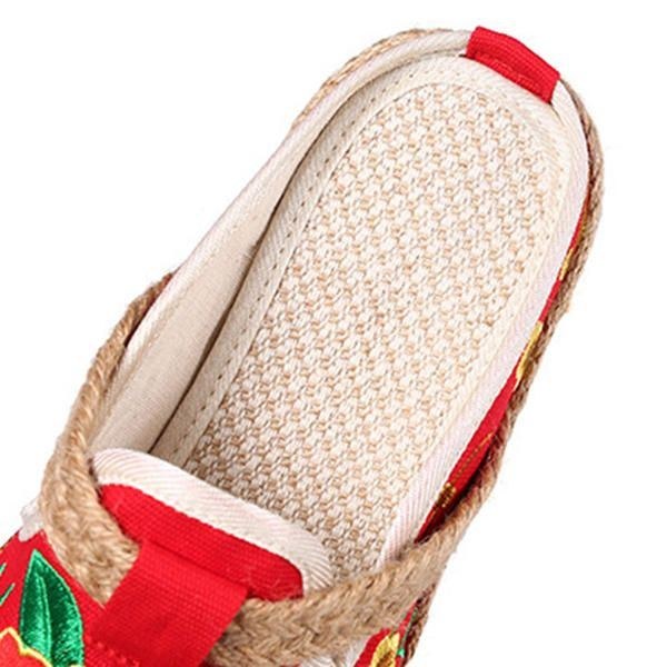 Rund Tå Lin Flower Flat Loafers För Kvinnor