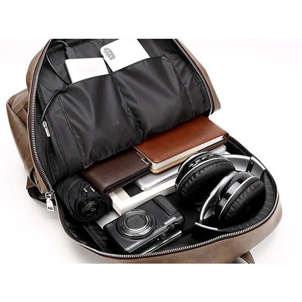 Vintage Konstläder Laptopväska För Män Reseryggsäck Axelväska