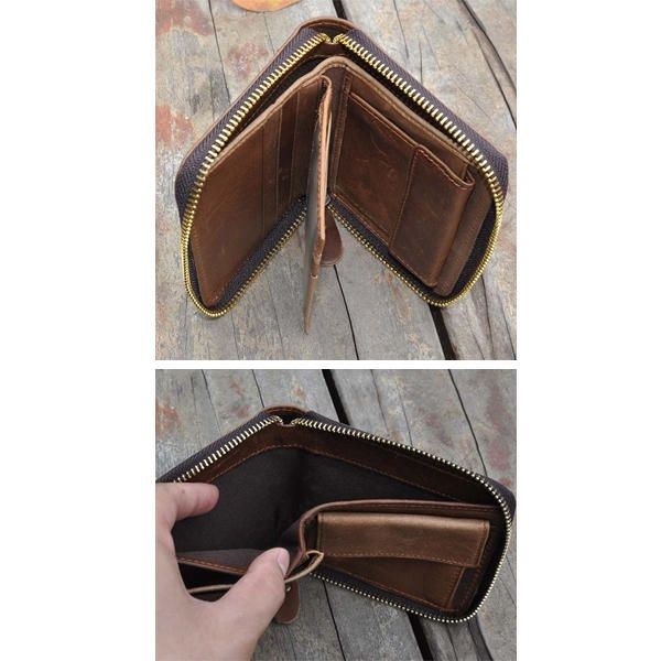 Vintage Myntväska För Män Med Stor Kapacitet I Äkta Läder